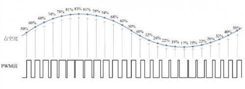脈沖寬度調(diào)制(PWM)是一種對模擬信號進行數(shù)字編碼的方法。通過高分辨率計數(shù)器的使用,方波的占空比被調(diào)制用來對一個具體模擬信號進行編碼。PWM信號仍然是數(shù)字的,因為在給定的任何時刻,滿幅值的直流供電要么完全有(ON),要么完全無(OFF)。電壓或電流是以一種通(ON)或斷(OFF)的重復(fù)脈沖序列被加到模擬負載上去。通的時候即是直流供電被加到負載上的時候,斷的時候即是供電被斷開的時候。只要帶寬足夠,任何模擬值都可以使用PWM進行編碼。而占空比就是高電平持續(xù)時間與整個周期時間的比值,占空比越大,高電平持續(xù)的時間越長,模擬電路開通的時間就越長,如圖1所示。