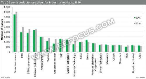 在預測2017年經濟狀況繼續改善的同時,IHS Markit列出了以市場份額排名的工業半導體市場前20強。