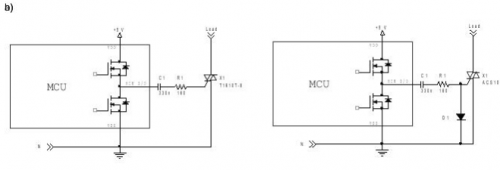 使用正電流驅動SCR很容易。如果SCR的陰極連接VSS端子,如圖1a所示,當控制電路(通常是微控制器)的輸出引腳置高電平時,控制電路向SCR柵極輸出電流。