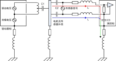 4)此處電機平臺和測控柜已有接地,通過傳感器連接線屏蔽層又將兩者連接,形成地環(huán)路。然而實際工程應用中地環(huán)路往往不可避免地存在,本例中若沒有屏蔽層依然會通過C2、電纜和C3產生高頻地環(huán)路,從這方面看屏蔽層改變了環(huán)路路徑。