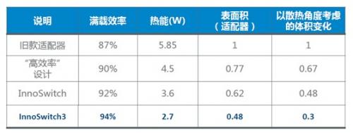 采用InnoSwitch3系列產品的適配器與舊款適配器性能對比圖