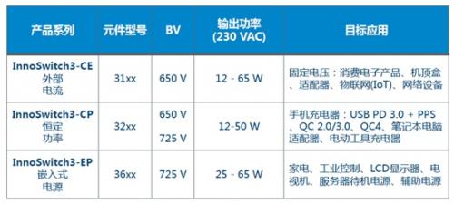 如圖所示,為了適應不同的應用,InnoSwitch3 IC產品系列提供三種版本: