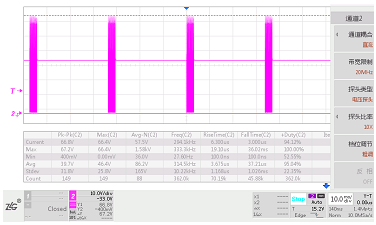 圖2 輸出短路時(shí)MOS管波形Vds_max=67.2V