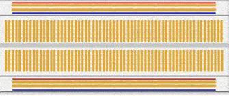 電阻器和電容器等元件的引線插入孔中。每組五個孔通過下面的金屬條連接形成一個節(jié)點(diǎn)。節(jié)點(diǎn)是電路中兩個或多個元件連接的點(diǎn)。可通過將元件引線插入共同節(jié)點(diǎn)來實(shí)現(xiàn)元件之間的連接。試驗(yàn)板頂部和底部用紅色和藍(lán)色條紋表示的一長排孔用于電源連接。插入元件并用跳線連接在一起便可構(gòu)建電路的其余部分。此類試驗(yàn)板最好搭配使用實(shí)芯線而不是多股絞合線。為方便起見,還提供配有插入式引腳的跳線。