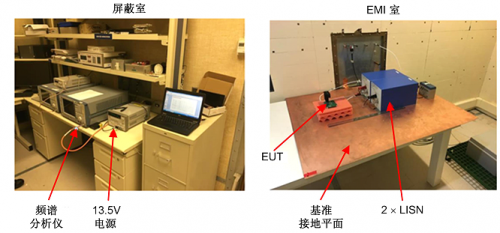 圖 3:使用 V 型 LISN 進(jìn)行的傳導(dǎo)發(fā)射測量。